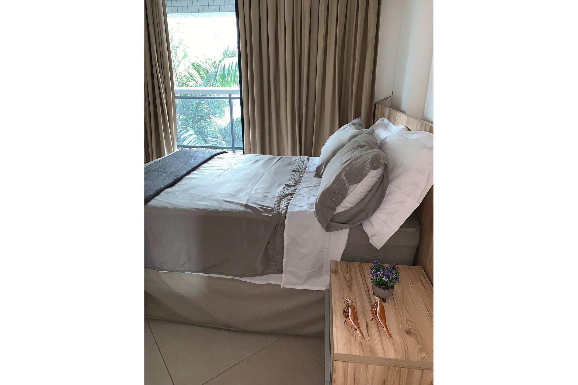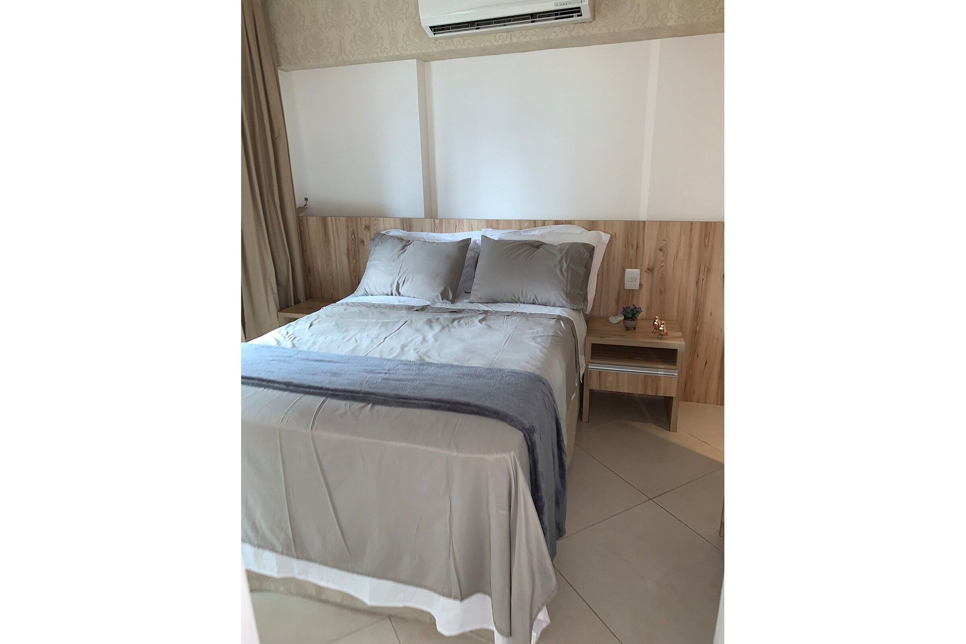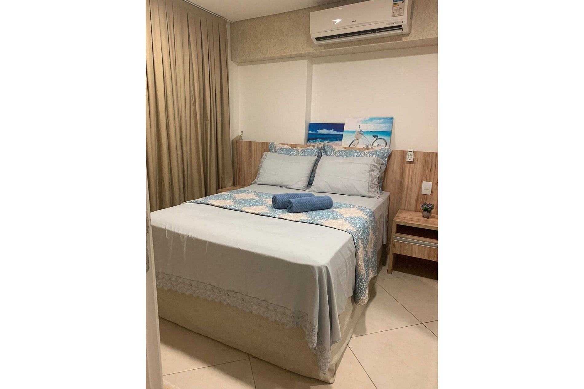 Fornecemos roupa de cama e banho e ferro de passar.