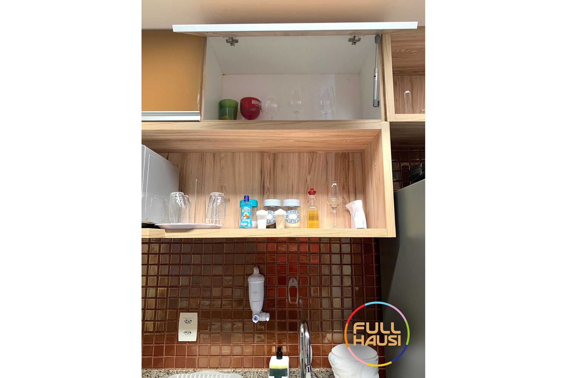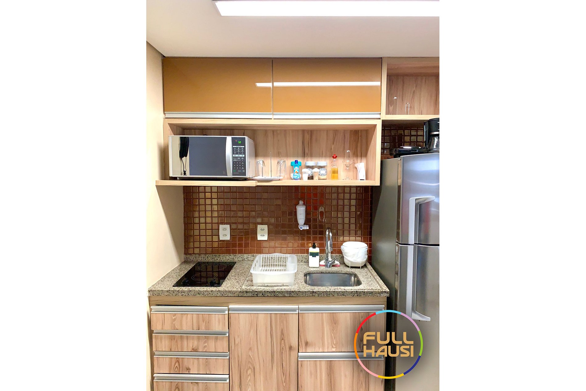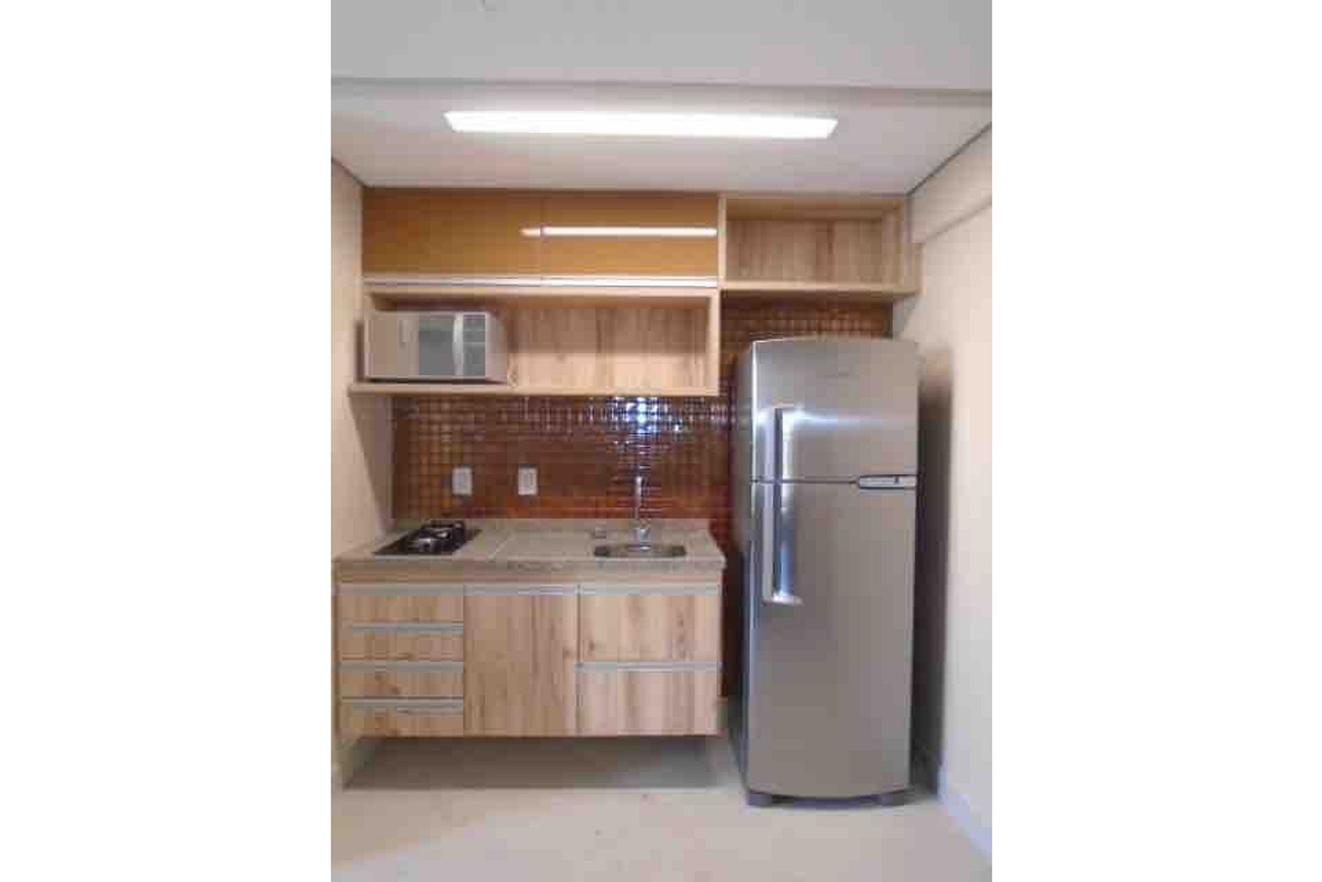 Cozinha equipada: Louça, liquidificador, micro-ondas, cafeteira elétrica, forno elétrico, fogão 2 bocas, coifa, geladeira.